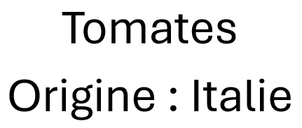 Pays d’origine : obligatoire dans certains cas (viandes, ou pour éviter d’induire le consommateur en erreur).